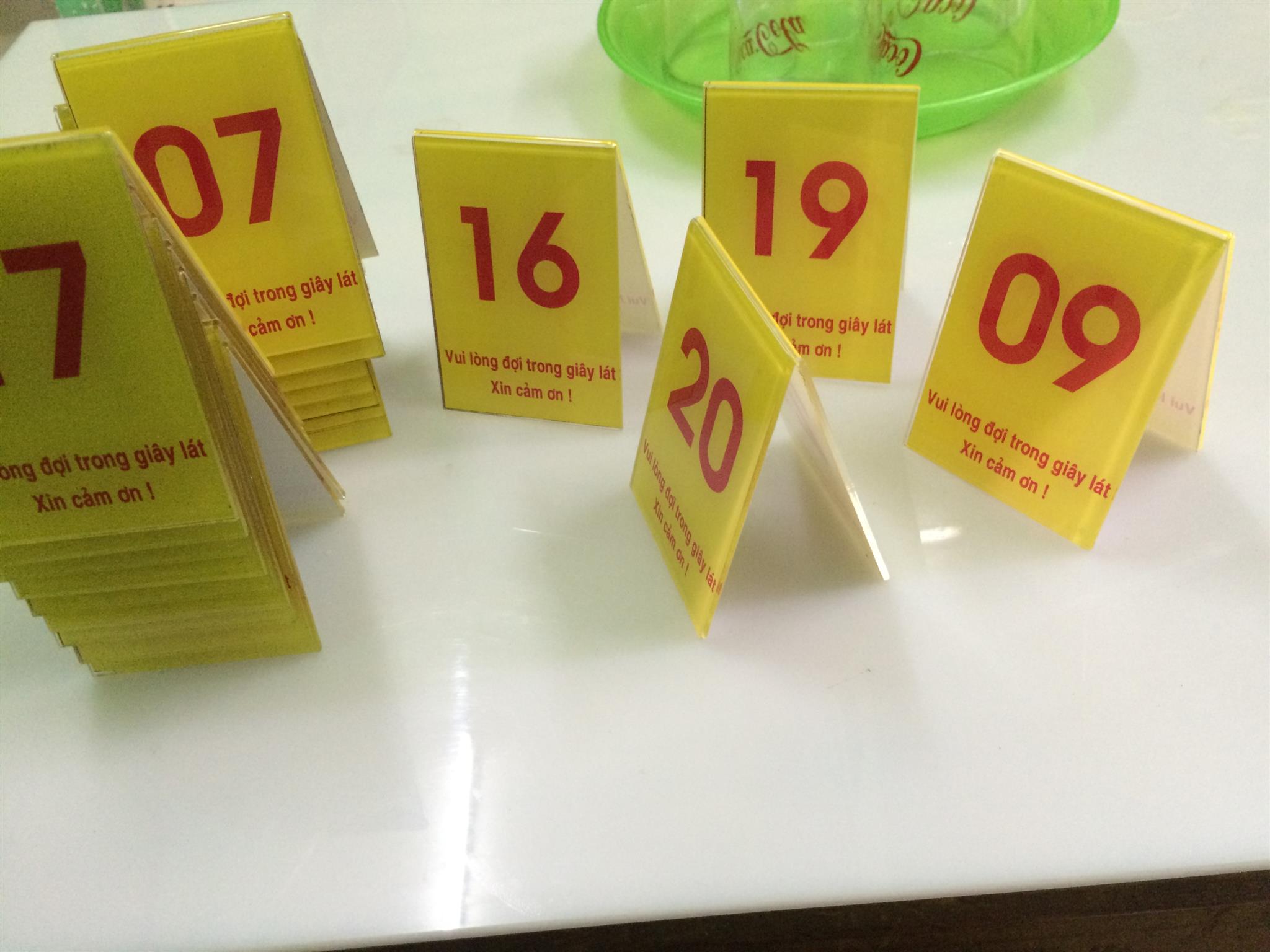 Biển số bàn in trực tiếp lên  mica giá tốt. Biển số bàn Mica là biển để bàn được dùng trong các nhà hàng, khách sạn, quán café, quá ăn.Biển số bàn được sản xuất theo yêu cầu về mọi kích thước, màu sắc. Chất liệu biển số bàn là inox hoặc Biển số bàn mica theo thiết kế theo yêu cầu. Chúng tôi có những mẫu  có sẵn theo yêu cầu khá phù hợp với nhu cầu của quý khách hàng.