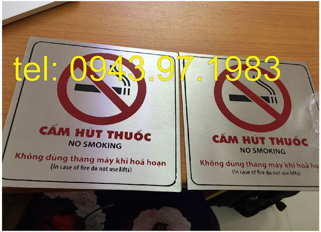 Chúng ta thường bắt gặp biển no smoking hay biển hiệu cấm hút thuốc ở các trung tâm thương mai, các công ty, các cửa hàng, các siêu thị. Do môi trường ngày càng nhiều người hút thuốc, ở các nơi công sở thường đặt làm biển hiệu cấm hút. Biển cấm hút thuốc được làm từ 2 chất liệu đó là Mica và Inox ăn mòn điện phân. Đây là 2 chất liệu bền, đẹp nhất được đông đảo quý khách hàng ưa sử dụng.Những biển hiệu văn phòng này được phổ biến dùng cho biển nhà vệ sinh, toilet, restroom, nhà tắm, số phòng, villa, biệt thự nhưng chúng hoàn toàn phù hợp cho bất kỳ cửa văn phòng hoặc biển hiệu phòng, khu vực thanh toán hoặc văn phòng mà cần có một tấm biển hiệu số hoặc tin nhắn nhỏ, cá nhân hoá những biển khá phù hợp và bắt mắt nhất. Nó giúp quý khách hàng có thể truyền đạt thông tin một cách văn minh, lịch sự nhất.