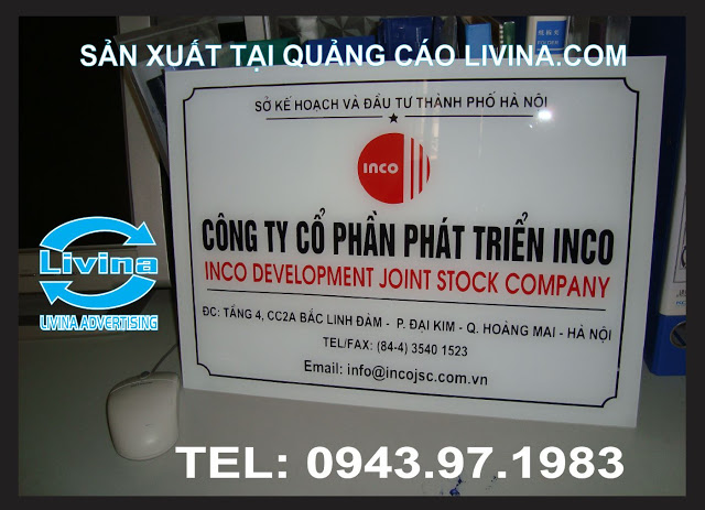 Những biển hiệu công ty thành công luôn tạo ra một ấn tượng mạnh với khách hàng cũng như gây được sự chú ý của mọi người , góp phần tôn vinh vẻ đẹp của quang cảnh khu vực lân cận, đây chính lý do tại sao các biển hiệu công ty gây được sự chú ý của mọi người ngay cả khi họ không chủ tâm tìm kiếm.Sử dụng chất liệu bằng Mica, biển quảng cáo luôn phù hợp với nhu cầu của khách hàng. Đến với chúng tôi, quý khách hoàn toàn tin tưởng về những sản phẩm và dịch vụ mà chúng tôi cung cấp với giá rẻ, theo yêu cầu đảm bảo về mặt chất lượng và số lượng.
