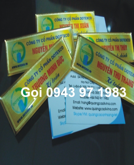 Quý khách có thể đến xem mẫu biển tên, biển tên nhân viên (thẻ tên nhân viên) đeo dây hoặc găn băng kim ở ngực,  biển chỉ dẫn, Biển tên công ty, Biển tên nhà máy, Biển tên khách sạn, Biển tên nhà hàng, Biển tên đại biểu, Biển tên công nhân, Biển tên khách hàngtrực tiếp tại văn phòng của công ty tại Hà Nội và thành phố Hồ Chí Minh hoặc có thể xem mẫu trên trang web QUANGCAOLIVINA.COM  sau đó chỉ cần để lại số điện thoại và email quý khách sẽ được nhận báo giá và hình ảnh sản phẩm qua email đầy đủ nhất.