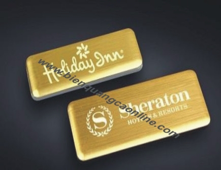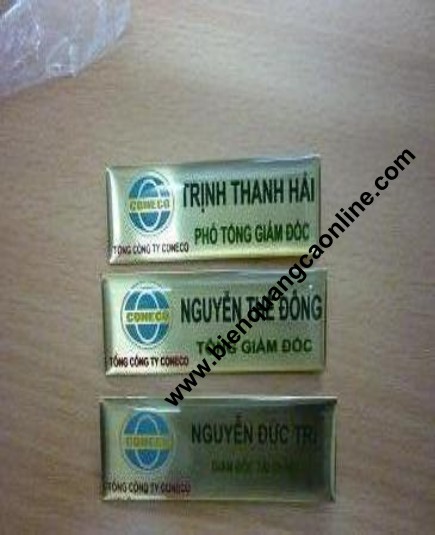 Biển tên đại biểu, Biển tên công nhân, Biển tên khách hàng có dạng hình chữ nhật có kích thước nhỏ thông thường khoảng 2*7cm, độ dày 1m, 2mm, biển tên có thể dùng để ghim lên áo trước ngực của mỗi cá nhân để ghi tên tuổi của cá nhân đó. Khi giao tiếp mọi người có thể nhìn vào biển tên trước ngực là có thể biêt được tên của người đó mà không phải giới thiệu