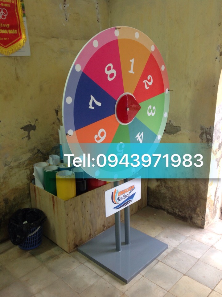 -Vòng quay trúng thưởng dạng standee,phần thân sắt nghiêng,mặt vòng quay nằm trên phần standee để giữ cố định.