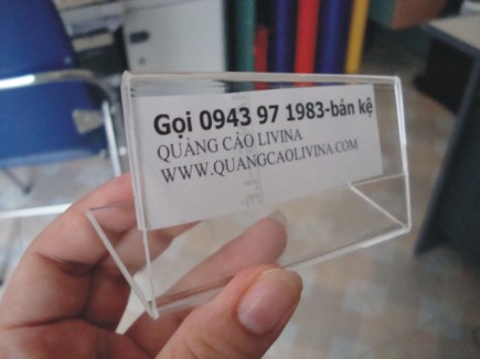 Kích thước của biển phòng ban là 30x15cm, làm bằng Mica 2mm, được phun sơn màu đồng lên mặt Mica và có ghi tên, chức danh phòng ban của một cá nhân. Biển phòng ban được sử dụng ở các công ty, các đơn vị, các cơ quan nhà nước.