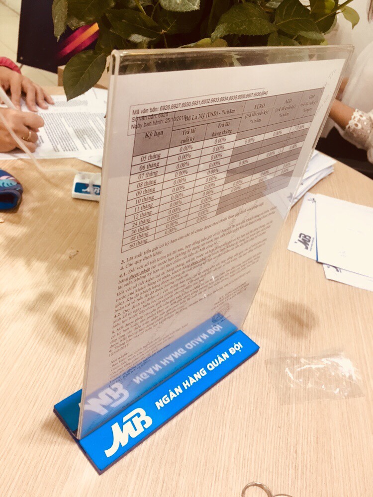 Menu mica để bàn kệ chữ T là khá phổ biến nhất bởi độ vững chãi và chất lượng, hình thức gọn gàng. Menu mica chữ T để bàn cân bằng, có thể thiết kế từ tấm mica trong đến mica màu. Mica màu thường làm phần đế còn mica trong, không màu làm phần thể hiện menu. Các loại menu mica để bàn với hình thức khác như tam giác, chữ T, hay dùng tấm mica không chân đều có được độ trong suốt cao, nhẹ và gọn gàng rất tiện đặt trên bàn. Đồng thời khả năng chịu lực tốt cũng giúp menu mica được sử dụng thuận lợi trong quán xá, nhà hàng, showroom cho đến menu giới thiệu sự kiện, chương trình…