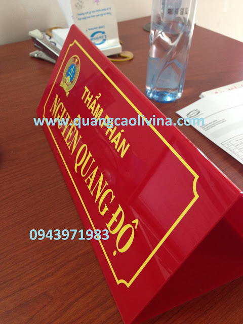Biển chức danh được để tại chỗ làm việc của các phòng ban, các cơ quan nhà nước, các công ty, các tập đoàn lớn. Biển chức danh thể hiện được vị trí, chức vụ của từng người, từng chức vụ, đơn vị. Biển chức danh giúp người đối diện có thể nhận biết được tên, chức vụ của từng người theo nhu cầu của quý khách hàng.