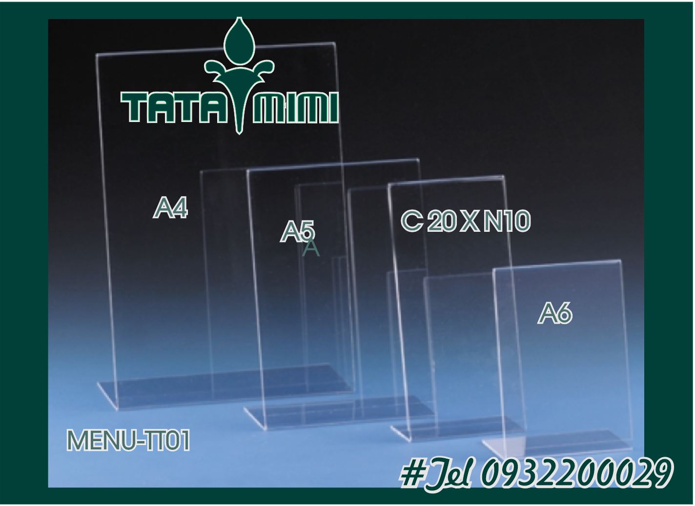 Kệ menu mica các loại được làm bằng Mica Đài Loan, được sản xuất theo kích thước tiêu chuẩn của các khổ giấy A4; A5; A6,.., ngoài ra chúng tôi còn làm theo kích thước yêu cầu. Menu mica các loại thường sử dụng mica 3mm hoặc 5mm, tùy vào độ dày mỏng khách hàng yêu cầu.