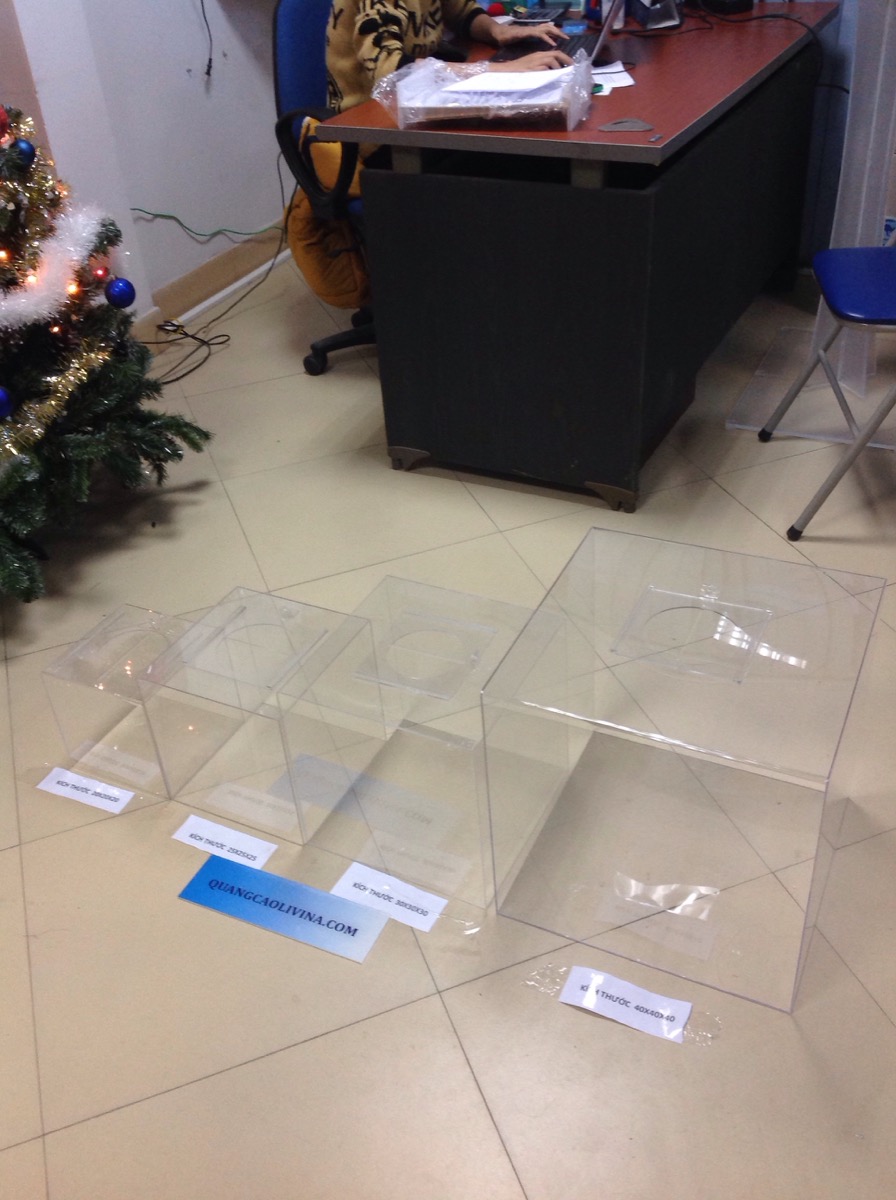 Hòm phiếu mica  cung cấp được làm thế nào? hòm phiếu mica  làm từ  Mica Đài Loan, được cấu tạo từ nhiều tấm mica được ghép lại với nhau sao cho phù hợp với kích thước,mục đích sử dụng mà khách hàng mong muốn. Thường thì hòm phiếu mica được cố định bằng keo dán mica. hòm phiếu mica  bảo quản, vệ sinh bằng cách dùng khăn thấm cồn, kem đánh răng hoặc nước rất dễ dàng.