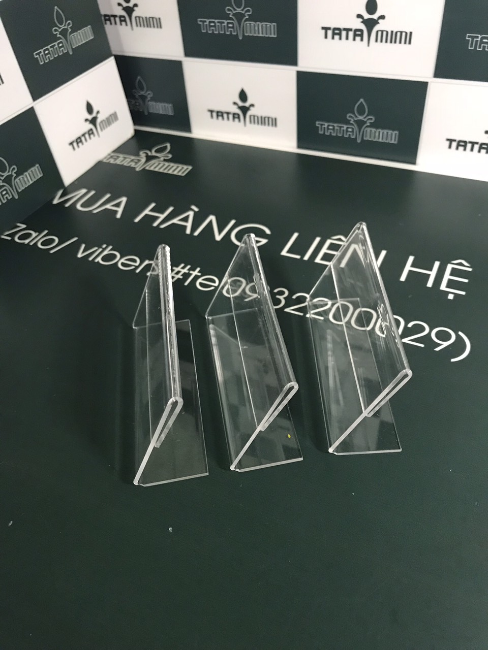 Kệ giá tên sản phẩm, kệ giá tiền thường được thiết kế theo kích thước 6x10cm, sử dụng chất liệu Mica trong Đài Loan 2mm. Kê giá tiền, kệ giá tên sản phẩm luôn được thiết kế theo kiểu dáng chữ L, chữ A, hình quạt, hình tròn…