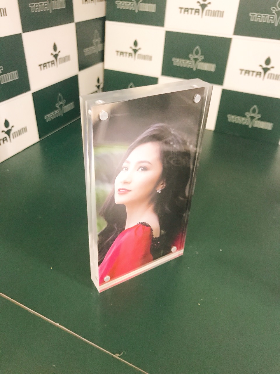Khung ảnh mica được tạo ra bằng 2 tấm mica kẹp vào nhau. Có kích thước tùy chỉnh theo mỗi nhu cầu người sử dụng. Khung ảnh được thiết kế nhiều họa tiết hoa văn khác nhau. Sử dụng máy laser để cắt sau đó gia công thành phẩm theo yêu cầu.Khung ảnh mica để bàn có độ trong suốt cao, màu sắc rộng rãi và sang trọng, giúp hình ảnh luôn rõ nét và nổi bật. Có độ bền cao cho dù phải tiếp xúc với môi trường khắc nghiệt. Chịu được lực tác động tốt, khó gãy vỡ, không bị bể vụn như chất liệu thủy tinh.