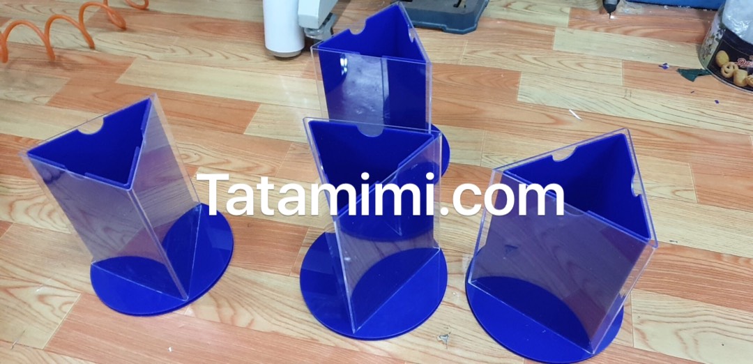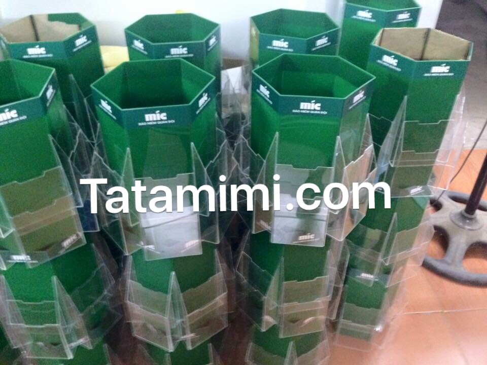 Kệ mica xoay thường được sản xuất bao gồm 3 mặt,4 mặt,5 mặt,6 mặt màu sắc đa dạng,được in ấn theo yêu cầu, đảm bảo đúng kích thước quy cách theo yêu cầu. Từ một tấm mica trải qua quá trình gia công mica, uốn mica bằng công nghệ cắt CNC,cắt laser bằng công nghệ hiện đại kệ mica ngày nay được sử dụng phù hợp với nhu cầu của quý khách hàng.