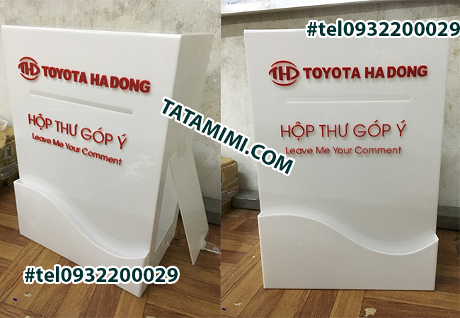 TATAMIMI.COM nhận là hòm thư góp ý hình ngôi nhà với mọi kích thước. Nhận làm hòm thư góp ý vơi các hình dáng khác nhau: hòm thư góp ý hình trái tim, hòm thư góp ý hình chữ nhật, hòm thư góp ý hình vuông,… bằng mica trong, mica màu
