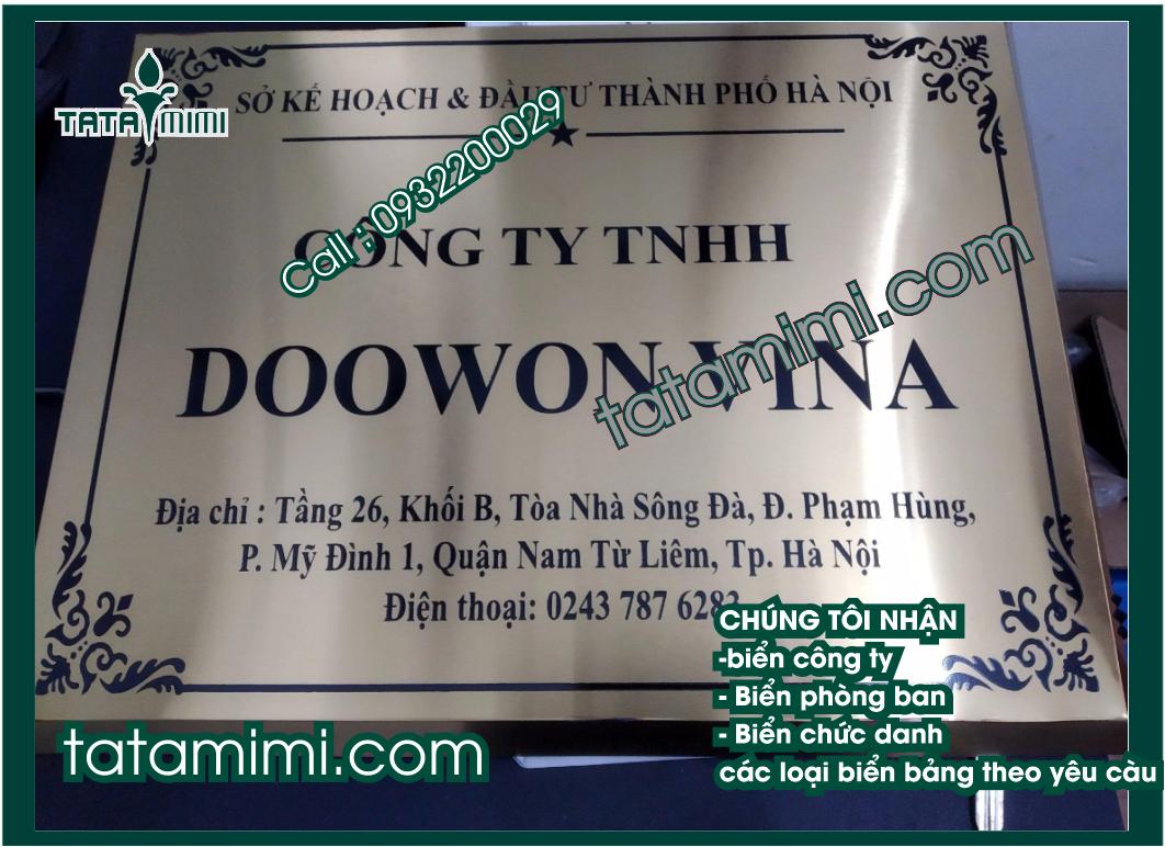Cung cấp biển công ty, doanh nghiệp treo ở ngoài trời hoặc trong nhà với chất liệu đồng,inox ăn mòn bền đẹp, mẫu mã đa dạng. Biển đồng ăn mòn được làm bằng các tấm đồng phẳng, sử dụng hoá chất làm ăn mòn kim loại; tạo nên phần nội dung chìm trên bề mặt tấm đồng. Phần nội dung có thể được sơn màu hoặc không. Biển quảng cáo đồng được dùng phổ biến tại bên ngoài trụ sở công ty, Doanh nghiệp, dùng làm biển quầy lễ tân, thu ngân tùy theo mục đích của mỗi quý khách hàng. Chúng tôi nhận cung cấp các loại biển đảm bảo chất lượng theo tiêu chuẩn.