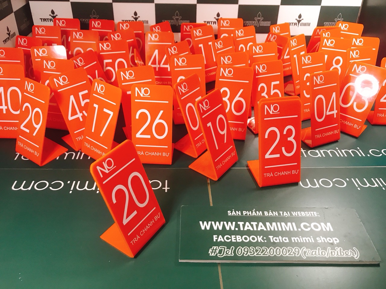 Đơn vị chuyên nhận làm biển số bàn cho quán café bằng mica màu đỏ, biển số bàn giá rẻ, biển số bàn theo yêu cầu với giá rẻ, đảm bảo chất lượng. Quý khách đang có nhu cầu làm biển số bàn phù hợp với nhu cầu.Biển số bàn, kệ số older thường có nhiều kích thước như hình tròn, hình vuông, hình bầu dục….và được uốn thành các biển số bàn, kệ số older dang chữ A, chữ L theo yêu cầu đặt hàng của quý khách.