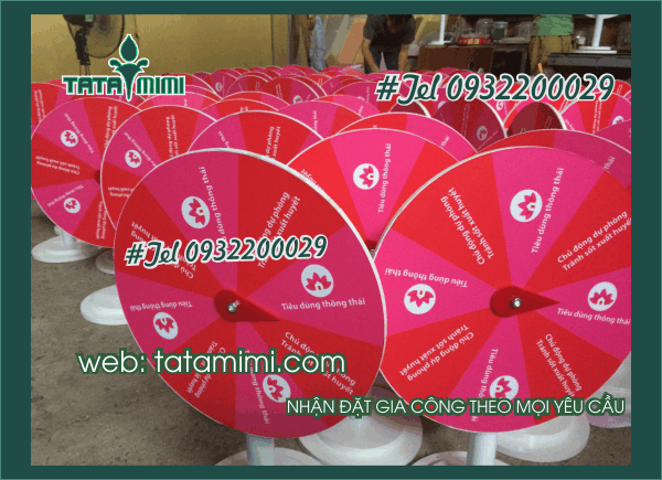 Được biết đến là một trong những đơn vị cung cấp các loại vòng quay để bàn giá rẻ. TATAMIMI Chúng tôi luôn cung cấp các mẫu vòng quay để bàn có sẵn tại Hà nội và Tp Hồ chí minh. Các sản phẩm của chúng tôi luôn đáp ứng nhu cầu của quý khách hàng. Nếu quý khách hàng đang là đơn vị cần làm vòng quay may mắn, vòng quay may mắn giá rẻ hãy liên hệ ngay cho chúng tôi để được tư vấn và hỗ trợ nhiệt tình.