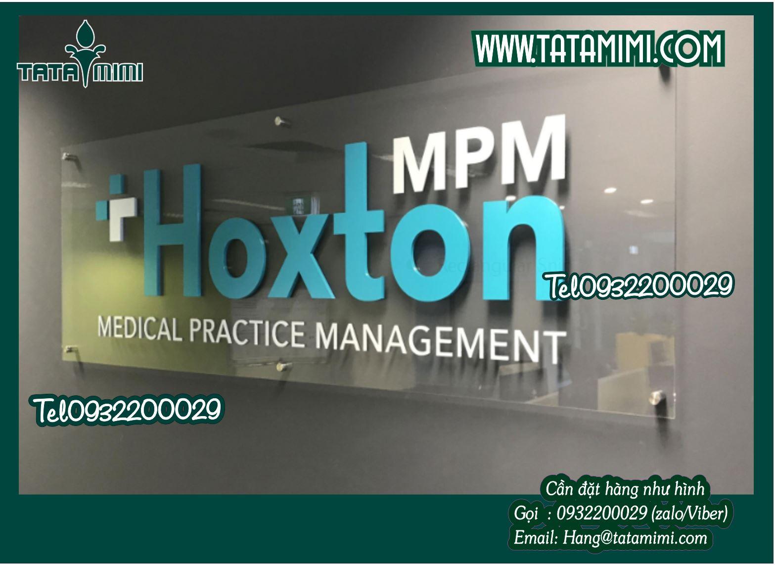 Quầy lễ tân treo tường bằng mica chữ nổi