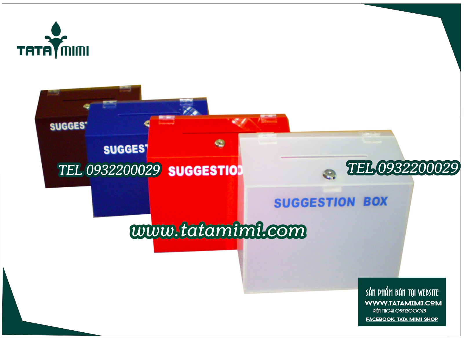 Sản phẩm Hòm thư góp ý thay lời muốn nói được làm từ mica trắng sữa,mica mùa,mica trong dán decal logo công ty. Không những vậy, những sản phẩm được làm từ mica có tính thẩm mĩ cao, dễ quan sát và vượt trội hơn những sản phẩm được làm từ thủy tinh.