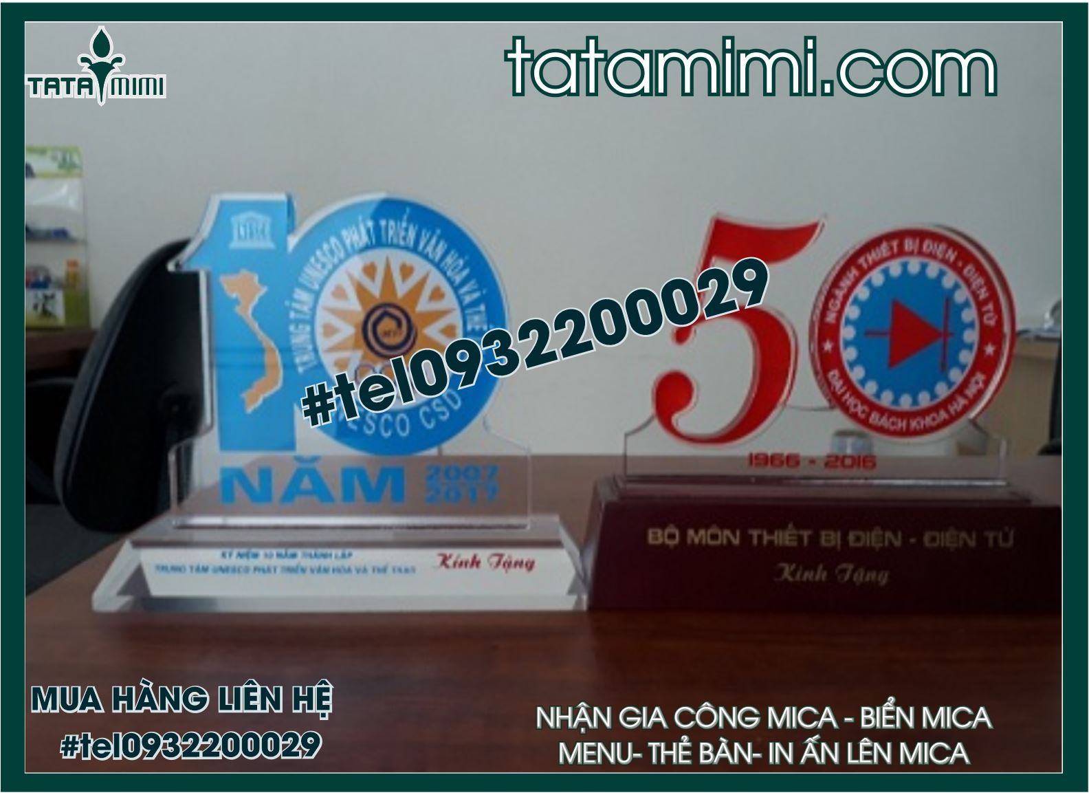 Ngày nay Kỷ niệm chương 10 năm thành lập trường rất phong phú và đa dạng. Nhưng với những món quà tặng dùng chất liệu mica thì có 1 nét rất riêng mà không chất liệu nào có được.Nội dung của các sản phẩm quà tặng bằng mica hay các mẫu sản phẩm kỷ niệm chương làm bằng chất liệu mica tốt có thể được in UV hoặc có thể khắc lazer trên đó.Với công nghệ tiên tiến cùng với đội ngũ thợ có nhiều năm kinh nghiệm luôn đồng hành cùng quý khách hàng. Những sản phẩm do chúng tôi cung cấp luôn đáp ứng nhu cầu, sự phù hợp đối với quý khách. Hãy liên hệ với chúng tôi để được báo giá sớm nhất