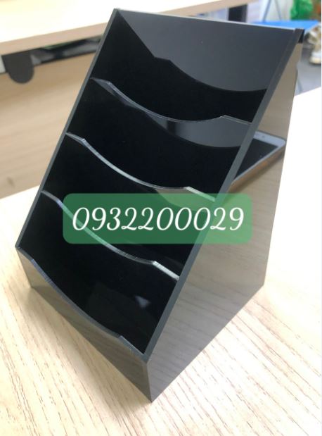 Kệ mica với thiết kế 6 ngăn để số lượng tờ rơi lớn dùng ở các văn phòng, các bàn làm việc, các siêu thị, các cửa hàng. Nó có thể đựng được rất nhiều giấy tờ khá phù hợp với nhu cầu. Kệ tờ rơi luôn có những mẫu thiết kế có sẵn và chúng tôi có thể nhận đặt hàng theo yêu cầu của quý khách hàng.